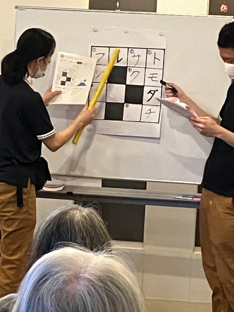 まずは、ホワイトボードを使い、皆さまでお正月にちなんだ「クロスワード」に挑戦。