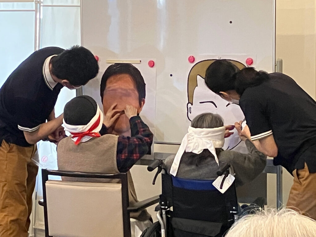 左のリアルな福笑いは…私、ホーム長の鈴木です。